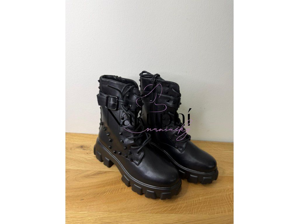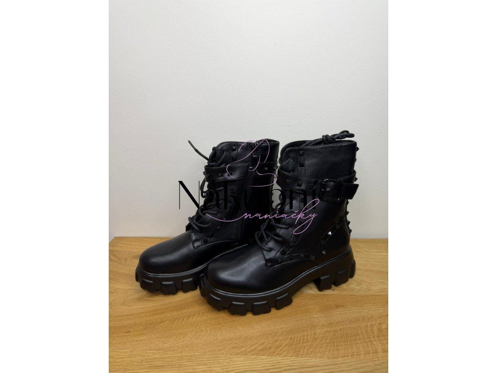 Černé kotníkové boty s hroty a masivní podrážkou