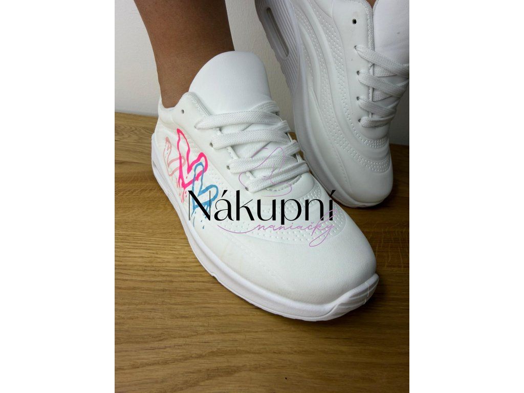 Dámské bílé tenisky na platformě s barevnými srdíčky "Love Art"