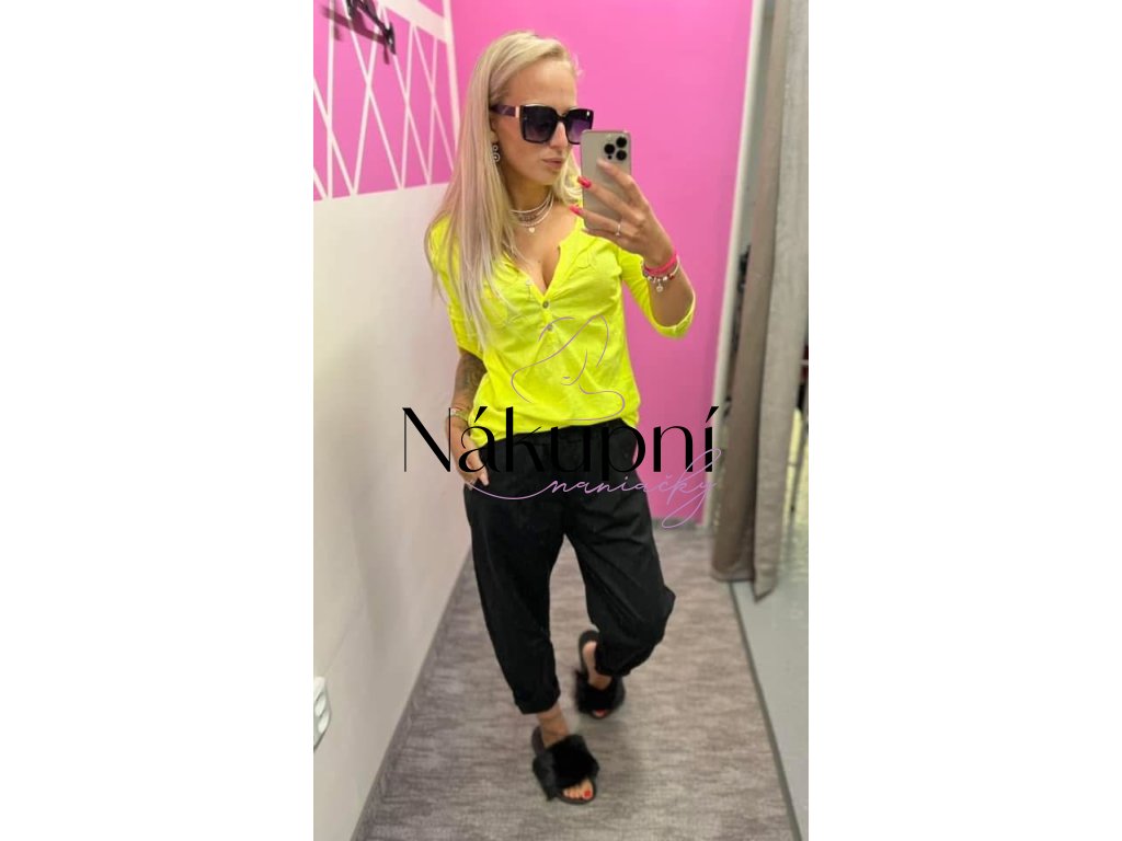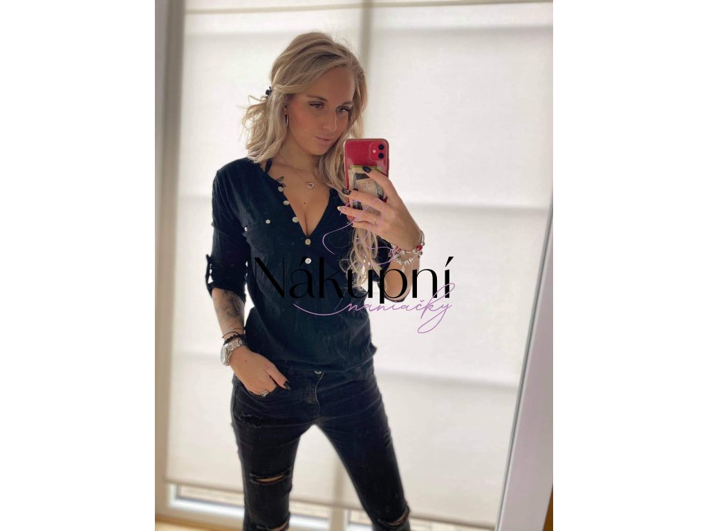 Stylové tričko s knoflíčky patří mezi nejoblíbenější kousky díky své univerzálnosti. Lze jej nosit volně, nebo lehce zastrčené do kalhot či sukně. Materiál je příjemný, prodyšný a jemně pružný.