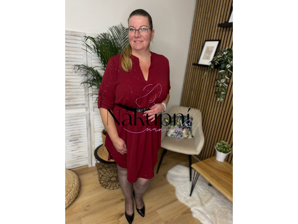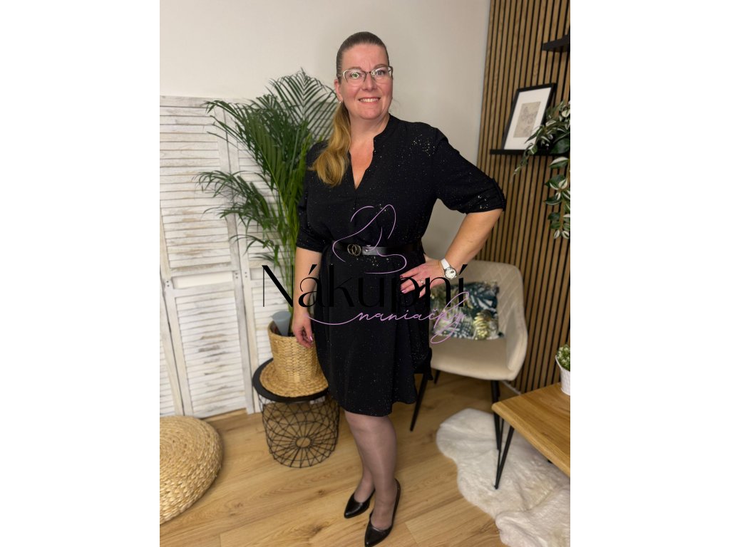Elegantní šaty nebo tunika s jemným třpytivým efektem. Pásek je součástí balení a rukáv lze nastavit podle stylu.